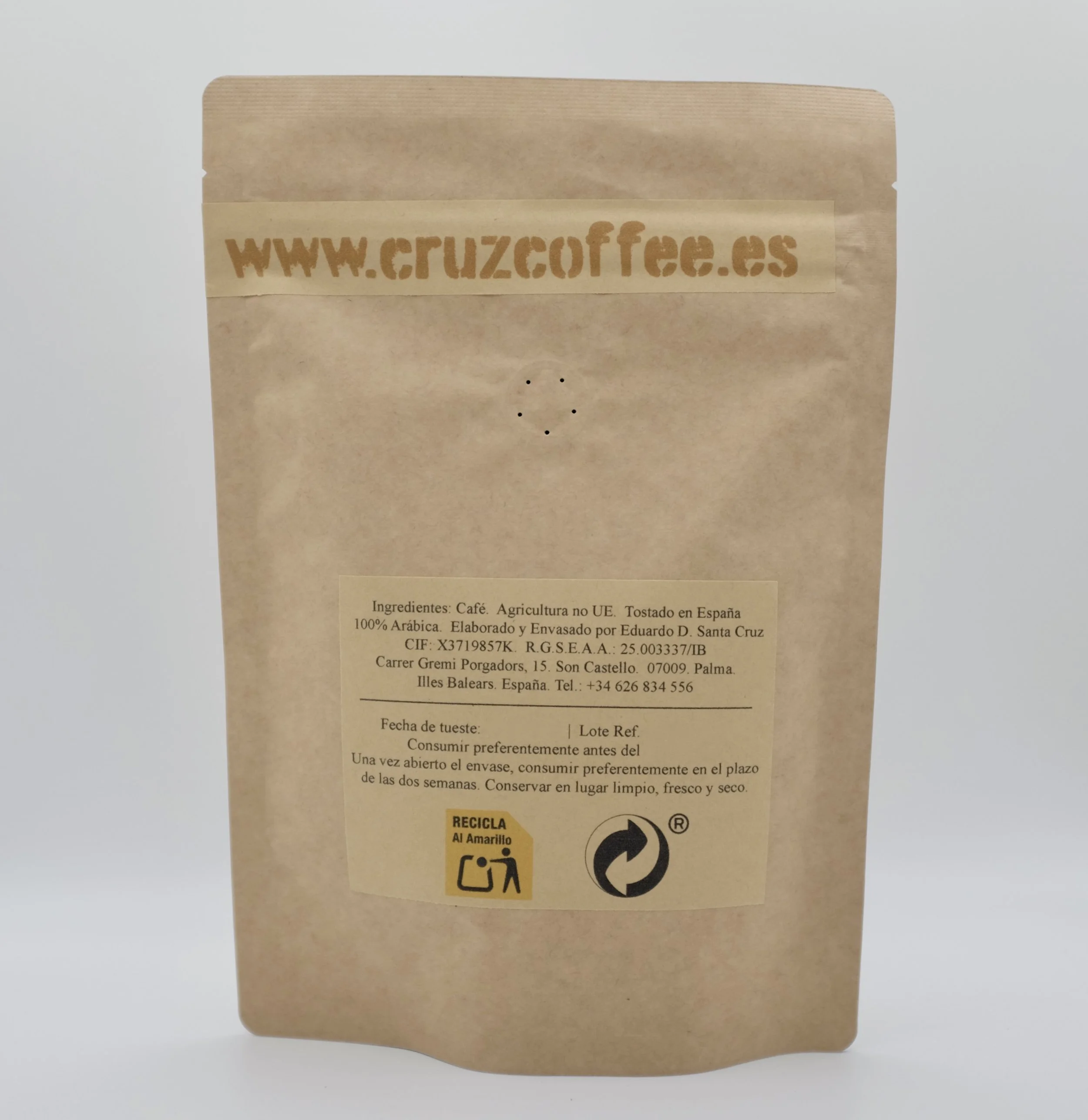 Ingredientes: CAFE. Denominación legal: Cafe De Tueste Natural. Presentación del cafe: en grano. Agricultura NO EU. 100% Arabica. Condiciones y/o fecha de consumo una vez abierto el envase: Consumir en el plazo de las dos semanas. Conservar en un lugar limpio, fresco y seco. Temperatura ambiente.